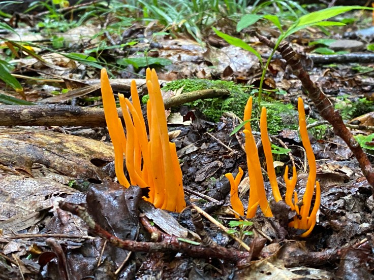 Amanda is a bit ahead of me and notices the marker first. There’s no official trail to these waterfalls, but by all accounts I’ve read there should be a discernible path. We start downhill, and I let Amanda take the lead. This is the first time we’ve hiked together, and I hope she’s comfortable with this sort of “off trail” travel. There are a few areas where the trail is easy to lose track of, but it’s fairly easy to follow. I had read that the trail was steep, but the only truly steep part is the very last drop down to creek-level, which is not only steep but also very slick and muddy.