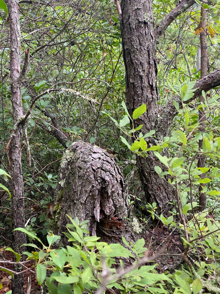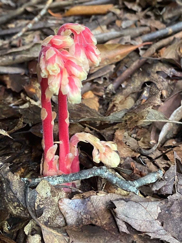 The first mile of this hike is painfully steep, and then the incline gets slightly more gradual. Charlotte curses William Bartram for not considering the grade of the route he was taking all those years ago, the route this trail is based on. I don’t think we are ever going to get the first mile behind us, but eventually we pop out at the intersection of the Bartram Trail and an old logging grade that leads to Handpole Branch Falls. I still need to see Handpole, but Beth and I have heard tale of yellow jackets along the route and decide it’s best saved for winter. We all stop for a snack before continuing on.