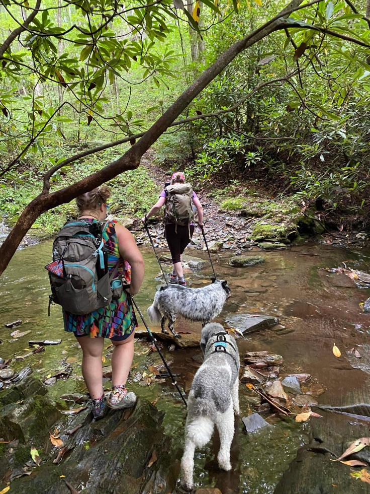 Every good story has a protagonist and an antagonist, right? Well, in this story, the protagonist is me. The antagonist? The nearly two-thousand feet of vertical gain standing between me and a mediocre waterfall I need to check off my list. As I drive to the trailhead to meet my hiking gal pals Beth and Charlotte, and Charlotte’s sweet pup Pepper, I try to mentally prepare myself for the six miles ahead of me. I’ve put this hike off for years, even though it’s close to home. I’m bad about this, getting into my head about hikes and talking myself out of them. When Beth invited me on this hike, I said yes, not only because I wanted to hike with her and Charlotte, but because I knew I was less likely to back out if they were counting on me to show up.