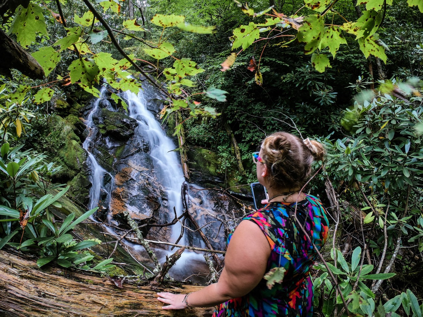 Every good story has a protagonist and an antagonist, right? Well, in this story, the protagonist is me. The antagonist? The nearly two-thousand feet of vertical gain standing between me and a mediocre waterfall I need to check off my list. As I drive to the trailhead to meet my hiking gal pals Beth and Charlotte, and Charlotte’s sweet pup Pepper, I try to mentally prepare myself for the six miles ahead of me. I’ve put this hike off for years, even though it’s close to home. I’m bad about this, getting into my head about hikes and talking myself out of them. When Beth invited me on this hike, I said yes, not only because I wanted to hike with her and Charlotte, but because I knew I was less likely to back out if they were counting on me to show up.