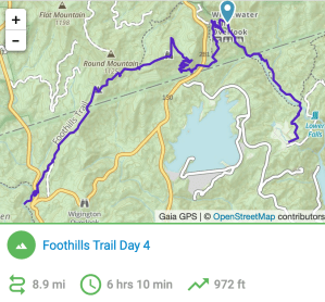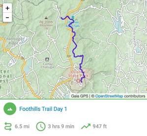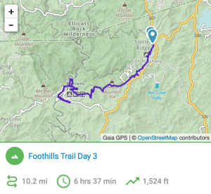 - Side trails taken: Pigpen and Licklog Falls (base and top), Big Bend Falls, Chattooga Trail into Burrell’s Ford, Kings Creek Falls Trail, Chattooga Trail to Spoonauger Falls w/loop back to FHT, Whitewater Falls Lower Observation Deck, spur trail to Bad Creek Access