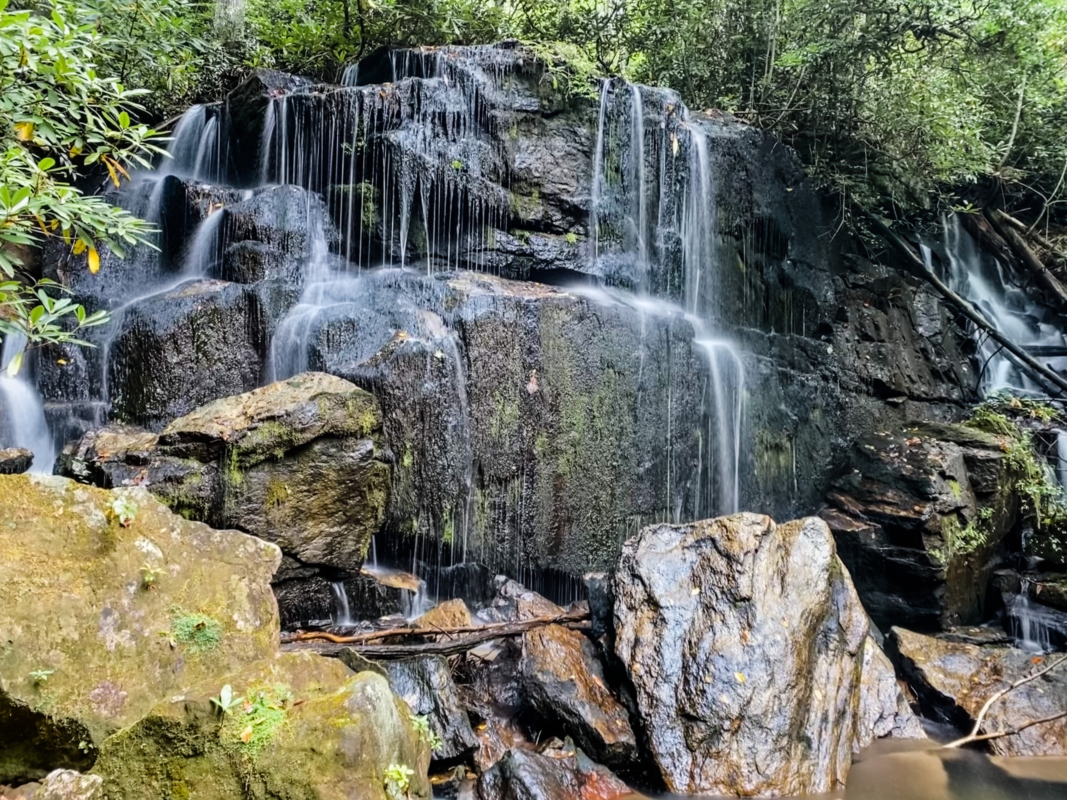 Reid Branch is not nearly as impressive as High Falls, but I enjoy the setting nonetheless. It has multiple small spills that flow over green moss like a veil, and would likely be really pretty if the stream were a bit larger or perhaps had a bit more flow.