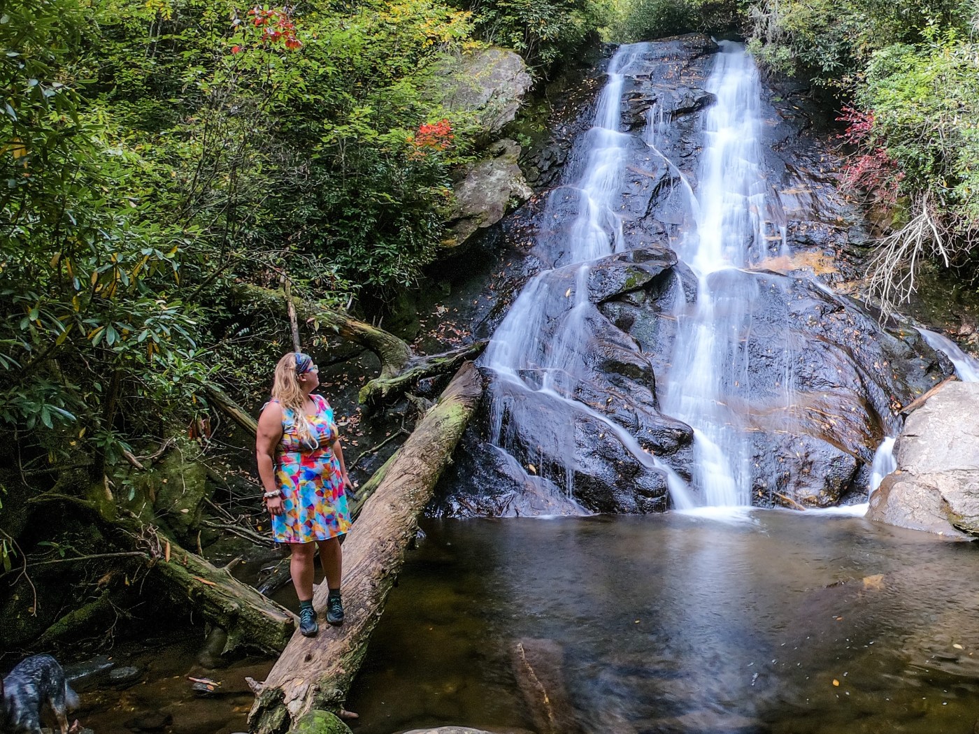 Once we reach the falls, I am honestly once again surprised by how impressive it is! This is a waterfall I’ve driven past a dozen times. For a long time I had no idea it was here, and once I knew about it I just never made time to stop. Big mistake, because this is one of the prettiest waterfalls/settings in this area, in my opinion.