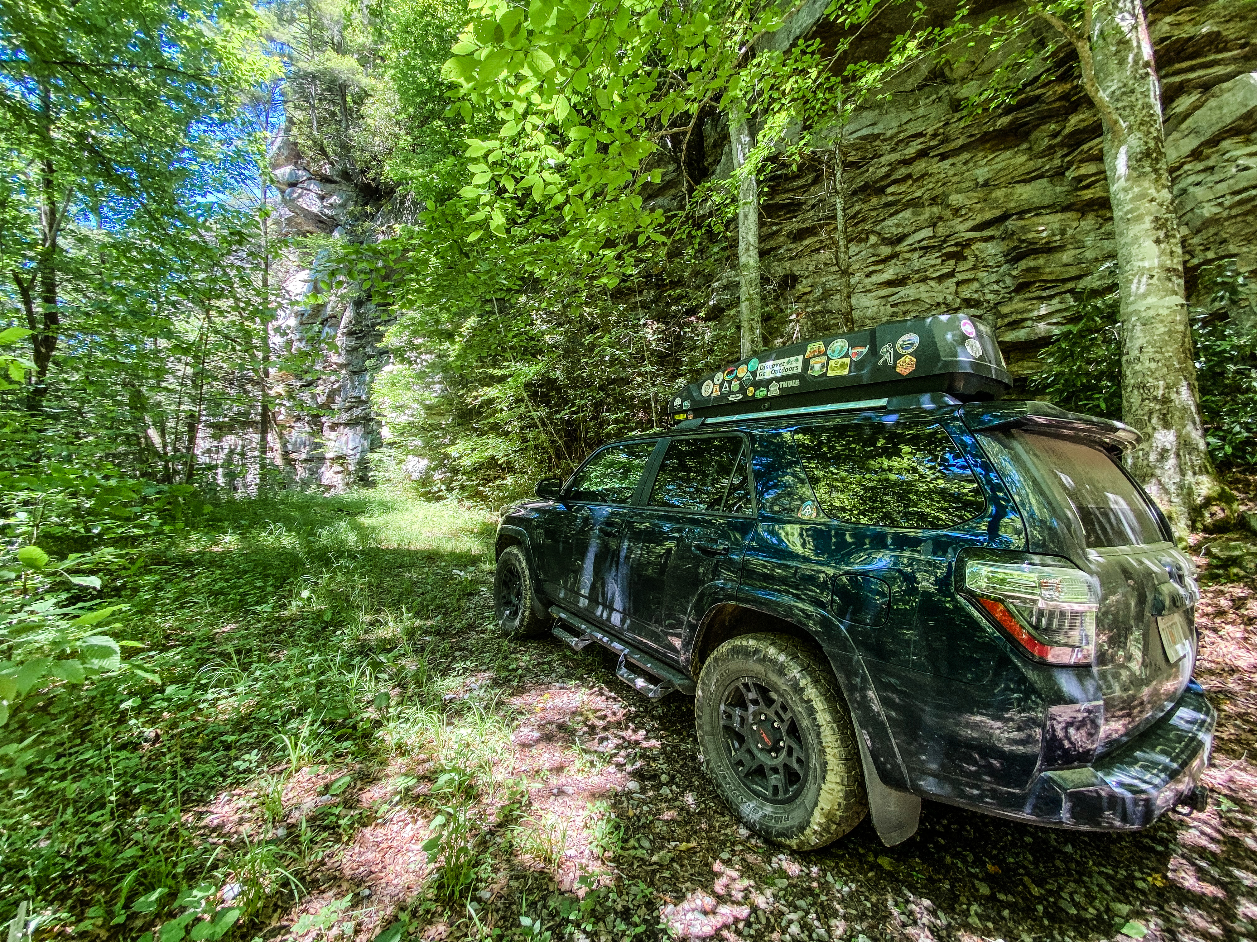 I am admittedly a major novice when it comes to driving 4×4 roads. I have a very capable 4Runner but I am not yet a very capable driver. That said, I did go down some pretty fun roads while I was in West Virginia, and I discovered to several others to save for later. One of the first I went down was an old commercial rafting take-out road to visit Bucklick Branch Falls. This was only one of many 4×4 roads in the Gauley River NRA, and I could have spent days driving around back there on either side of the river and visiting remote waterfalls and pristine riverside swimming and lounging spots.