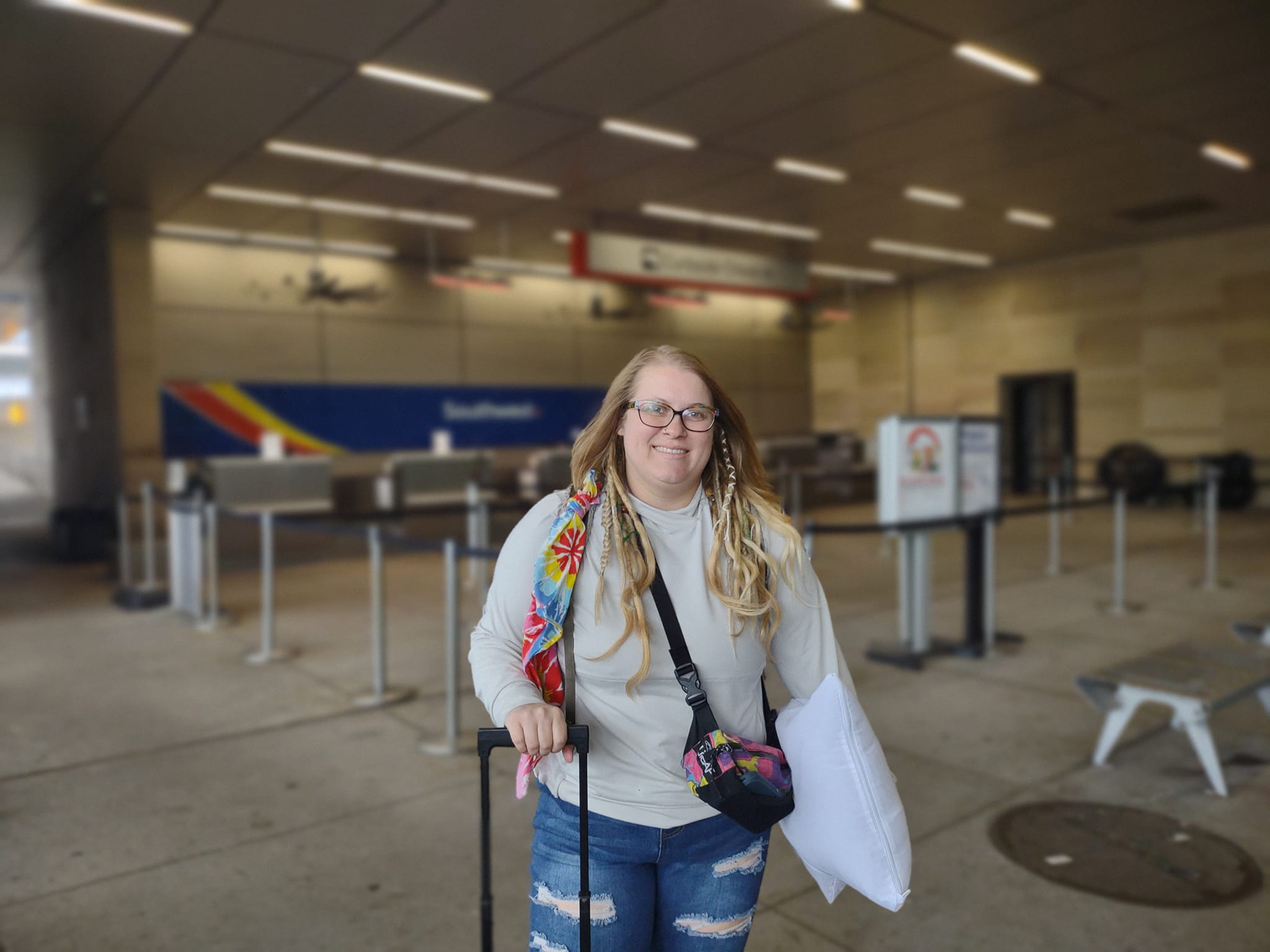 As we are driving through the spaghetti of airport roads I glance at my ticket and realize I’m at the wrong airport! I’m supposed to be flying out of Dallas Love Field! Not Dallas Fort Worth! Thankfully, these two airports aren’t very far apart– only about 30 minutes — and I’m early. We scoot over to the correct airport, my mom snaps a photo, and I’m out of the car and on my way, whether I have everything or not.