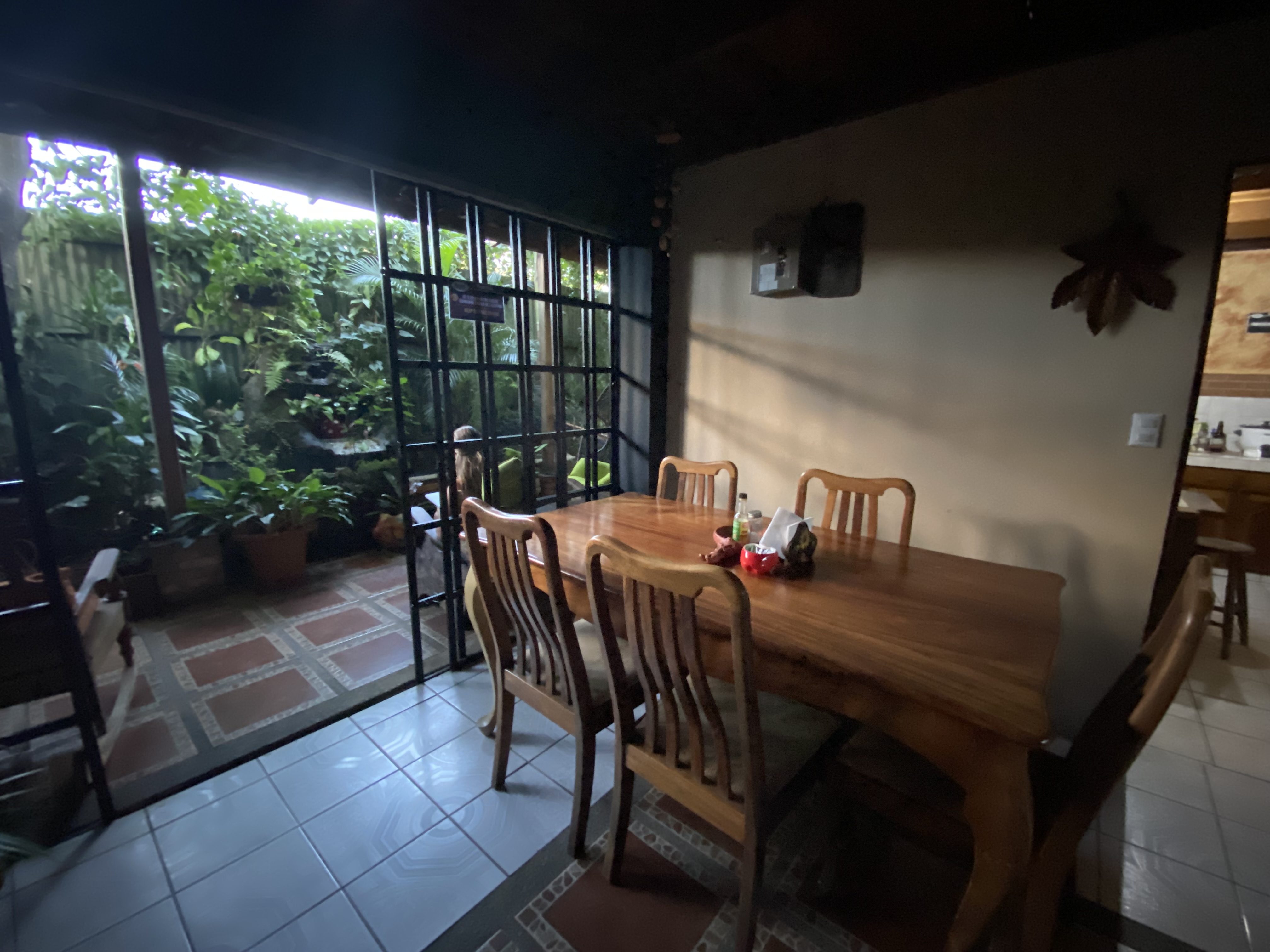 SJO isn’t particularly well marked or intuitive, but I follow the masses and make it through passport check and customs without any hiccups. Prior to arriving, I’d arranged WhatsApp communication with Louis, the owner of the hostel I’m staying at tonight, so that I could contact him via wifi. I send him a text that I’ve landed and will let him know when I’m ready for pickup, and I make my way to the pre-arranged location. I have a bit of trouble finding it, and I’m not sure I ended up where he wanted me to but he found me. I get into the car and am quickly reminded why I have no desire to drive a car in Costa Rica– drivers here are wild! We arrive at Gardens House Hostel and I am blown away by the beauty of it. I had forgotten how airy and open Costa Rican homes are. They are almost all open to air and lacking air conditioning, but somehow they still are comfortable. I get checked in and shown to my dorm, where I meet my roommate Doris from Zurich. She’s been traveling around for four weeks and is headed home tomorrow.