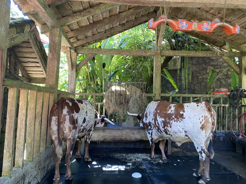 We leave the cat enclosures and head to a replica of an 1800s-early 1900’s working Costa Rican farm. A traditional farmhouse was built on site to demonstrate what daily life would have looked like back then, and only tools that would have been available to farmers of that time period were used to construct it. The house is beautiful, if plain, and the homemade and fresh sugarcane tea and cow cheese served inside were delicious. We visit the farm animals and a frog garden before heading down the waterfall trail.