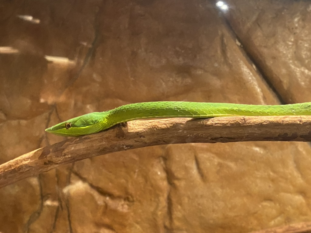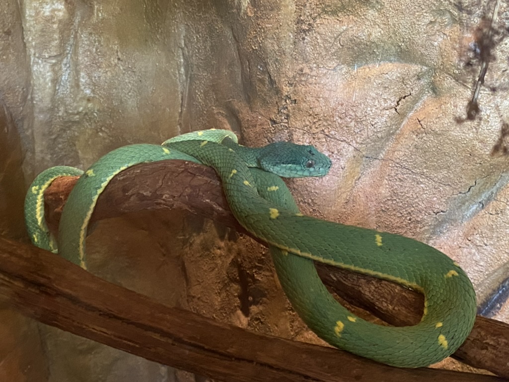 Neither Slow nor I had eaten breakfast yet, so we bought our tickets (the total came to about $70 USD for the entry fee + buffet lunch) and headed to the attached restaurant to order breakfast. Following breakfast, we head out on a self-guided tour of the park. The animal exhibits are up first, starting with monkeys! We check out the monkey viewing area, then head to the hummingbird garden where dozens of hummingbirds are buzzing around sipping nectar from feeders and native flowers. We wander into the snake exhibit and are viewing the snakes whenever an employee enters the small building where they are housed. “Do you know much about snakes?” he asks. I reply that I know some, and Slow states she doesn’t know very much. He introduces himself as John and asks if we mind if he tells us about the snakes. We agree, and John bursts into an enthusiastic explanation of the 137 species of snake that live in Costa Rica, among which 26 are venomous.