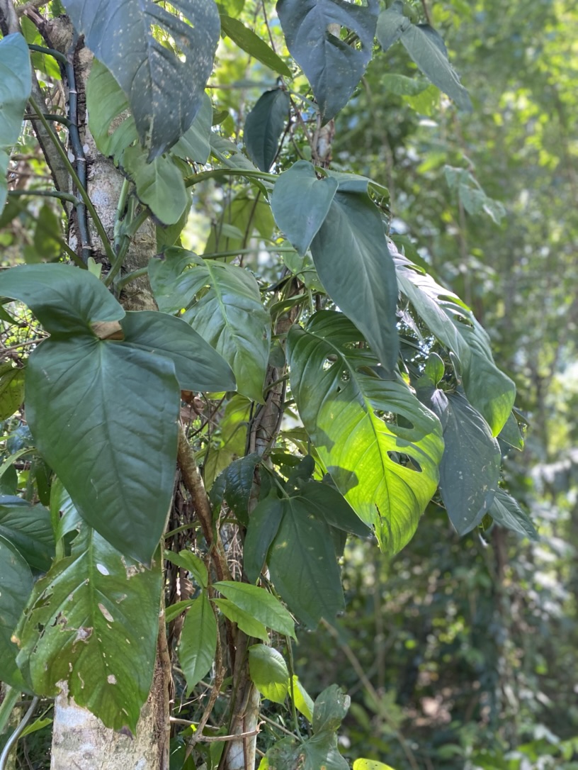We leave the farm after lunch and head into the small tourist town of La Fortuna to retrieve two of our group members who had some flight delays and have finally caught up to us. They hop on the bus and we head toward Arenal– one of five active volcanos in Costa Rica. An “active” volcano is one that has erupted in the past 10,000 years. Arenal last erupted in 2010, but today we will be hiking over the lava flow from the 1968 eruption. This eruption buried three towns, destroyed multiple farms, crops, and herds of livestock, and resulted in the deaths of 87 people. Today, the area around Arenal is being re-cultivated and as we begin our hike we see several crops being grown on the open hillside before entering the canopy of the jungle.