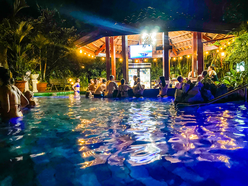 This is a loop trail, so we continue on and as we get closer to the parking area we are all excited about the hot springs, which are up next on the agenda. I think people often discount “hot springs” because many of them are really just curated pools full of warm water, but honestly, what is so bad about that? The springs we are visiting tonight are in fact man-made pools, but the water in the pools has been heated by the volcano and enriched with minerals as it travels through the earth. They are wonderful, and soaking in them in the perfect, relaxing end to a long day. Plus, there was a swim-up bar. What more could one want?