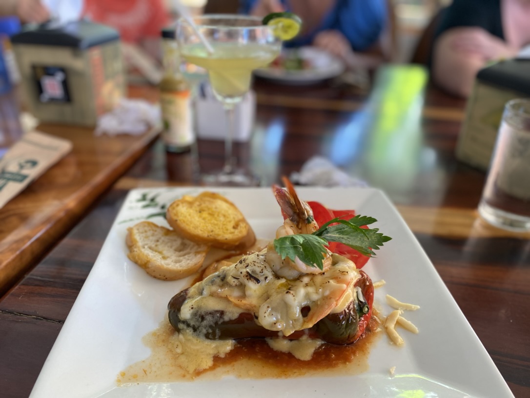 Afterward, we decide to stop for lunch at a roadside restaurant. This restaurant looks more like a shack than anything, but it is PACKED and lively. The servers piece together a table for us and we enjoy yet another delicious Costa Rican meal. I had a poblano pepper stuffed with shrimp and cheese. As we take turns going to the register to pay, one of the bartenders approaches me with a shot glass full of red liquid. “Chiliguaro!!” he says, pushing the shot glass in my direction. When in Costa Rica, do as the Costa Ricans do! I cheers the bartender and down the spicy shot, glad to have had the opportunity to try this Costa Rican delicacy.