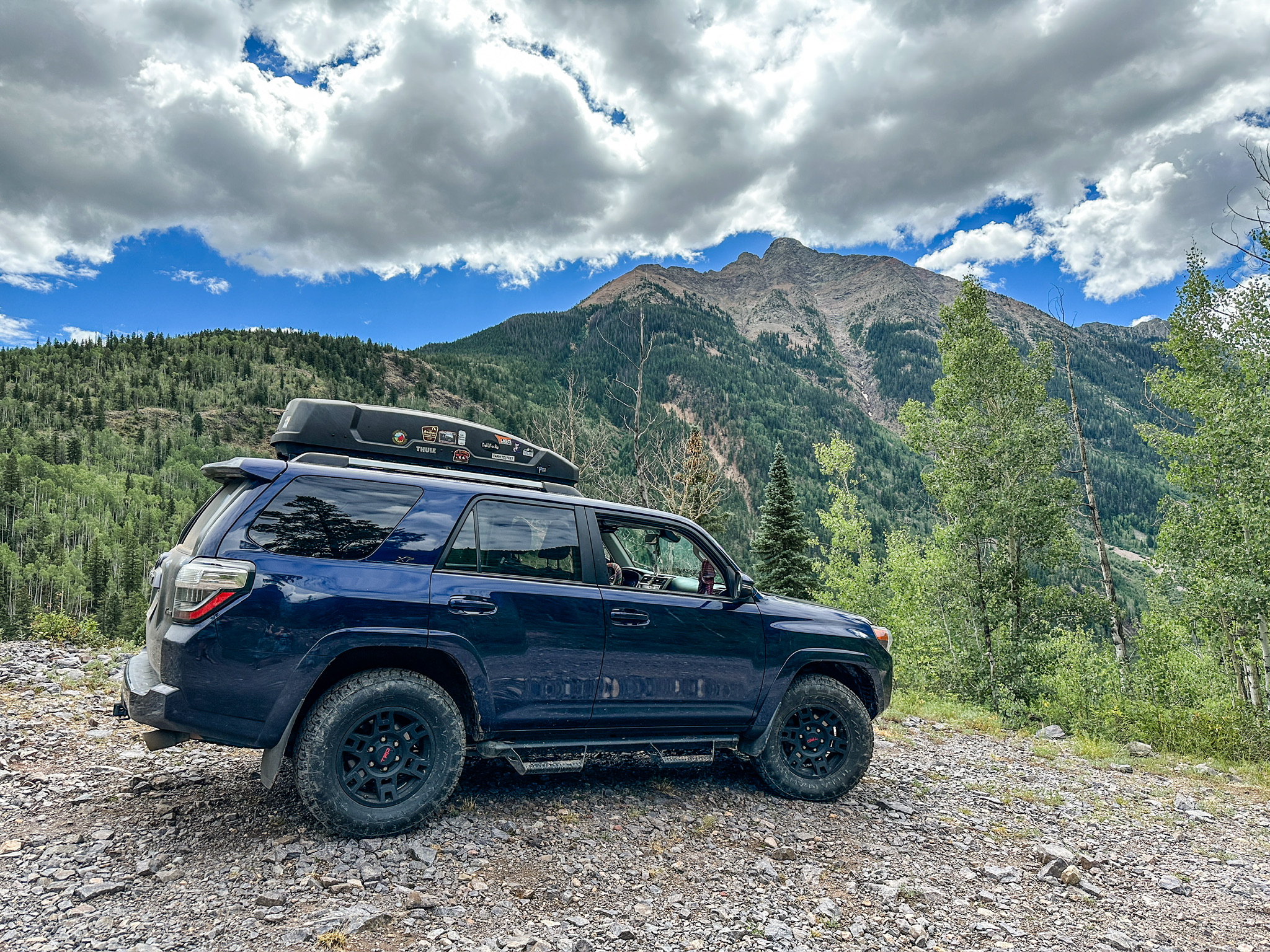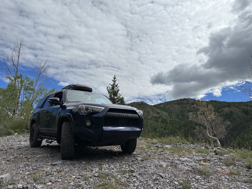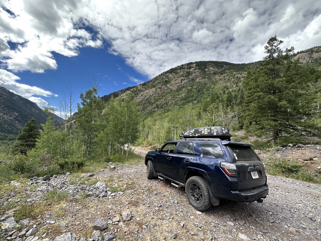 We made it back to our staged shuttle vehicle at the end of the loop just before the rain started. Showers continued into the evening and we drove into Durango for a grocery resupply to prepare for the next several days. Starting tomorrow, we will be spending the next few days driving the Alpine Loop Backcountry Byway– a 4×4 loop that connects the towns of Silverton, Ouray, and Lake City via dirt roads. We won’t be back in a proper town for a bit, so we stock up on supplies, grab a pizza on our way back, and go to bed early for another early start.