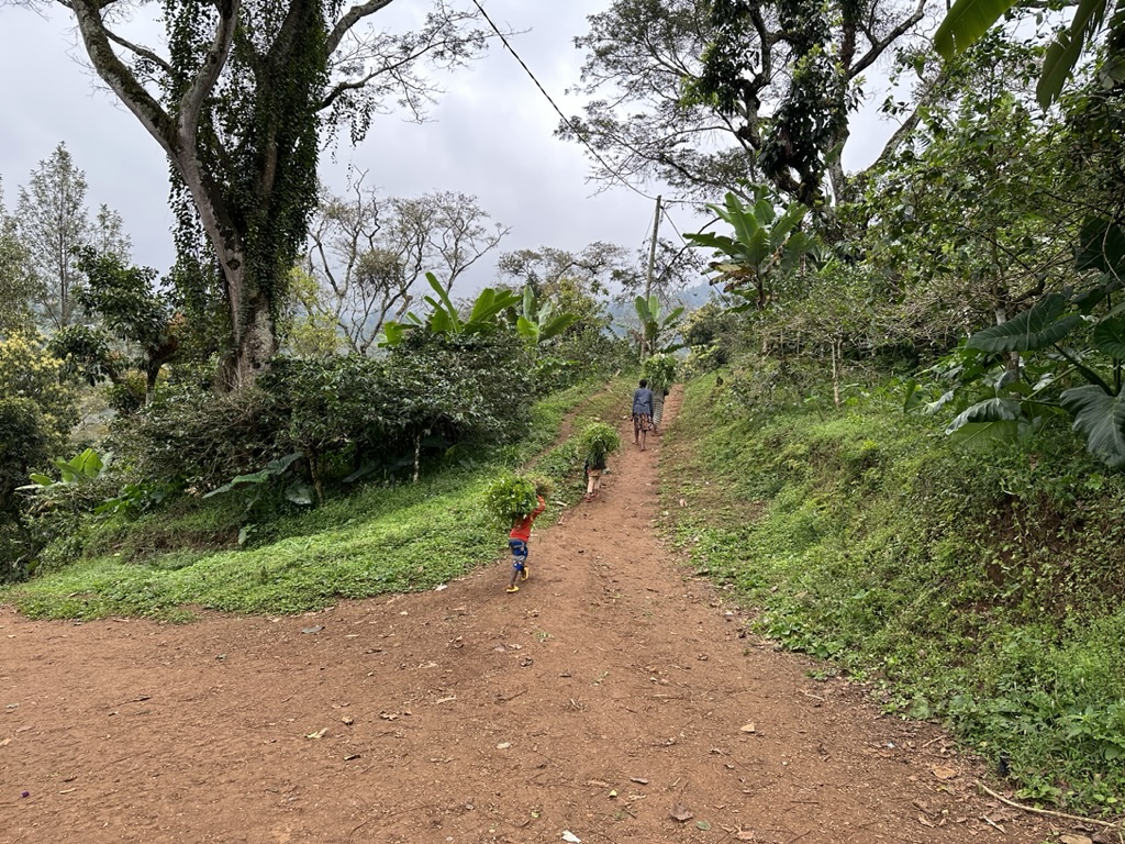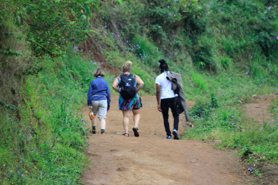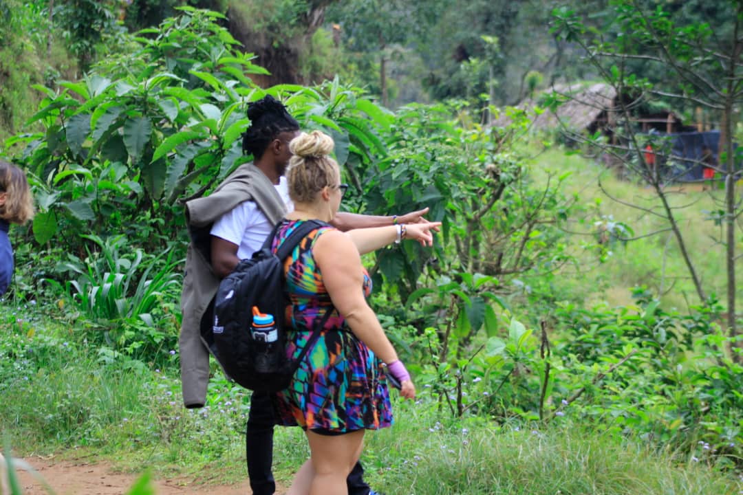 Albert and his partner, Benson, pick me up first, then we swing by the Pink Flamingo Hotel to grab Catherine before heading toward Moshi. The drive takes us up a narrow, winding, ridiculously bumpy dirt road to a trailhead high on the slopes of Kilimanjaro in Materuni Village. This Chagga village is the last settlement before entering Kilimanjaro National Park—the last bit of civilization before the wilderness takes over. The Chagga people, one of Tanzania’s largest ethnic groups, have lived on the fertile slopes of Kilimanjaro for generations, cultivating coffee, bananas, and other crops.
