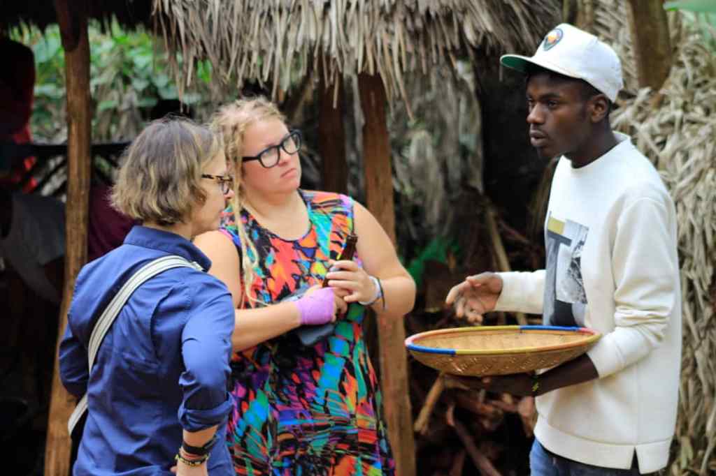 After another round of fresh, delicious food, we head onto the coffee farm, where we learn the entire process from harvesting and shelling the beans to roasting and finally brewing a cup of Tanzanian coffee. I’m not much of a coffee drinker, but I take a polite sip. I won’t be downing a full cup anytime soon, but if I were a coffee person, I imagine this would be the good stuff.