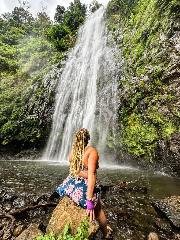 When we reach the waterfall, it stops me in my tracks. It’s stunning. I’m immediately grateful that I packed my swimsuit. I quickly find a spot to change and wade into the water. It’s freezing. The force of the falls is so strong that it creates a wind and current that push me back before I can swim out very far. I stay in as long as I can stand the cold before climbing back out to warm up.