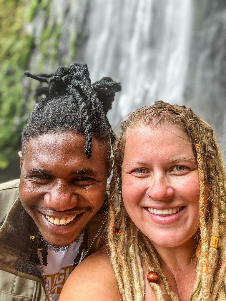 Before leaving, I browse a small market near the farm and pick out a canvas painting of the waterfall we visited. It feels like the perfect souvenir. Albert surprises me with a hand-made dreadlock bead in the colors of the Tanzanian flag, a gift of his friendship. I have him put it on one of my locks before leaving.