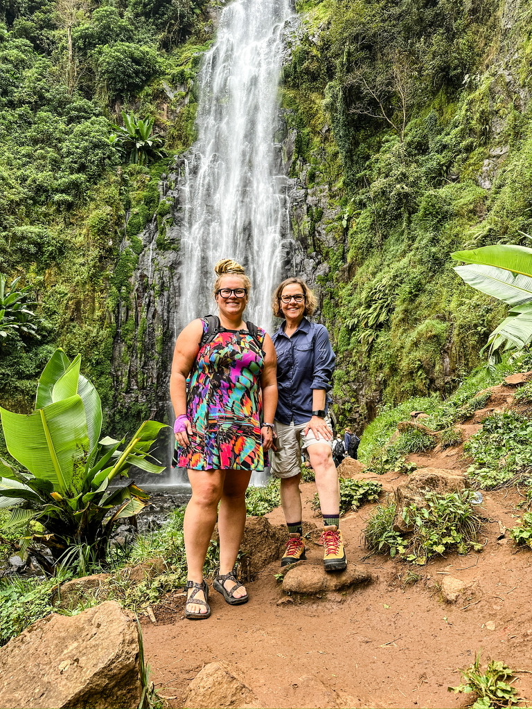 We park and begin a 2.6-mile hike down an old dirt road that leads to Materuni Waterfall, also known as Nambe Waterfall. This glacier-fed cascade originates from the streams running off the slopes of Kilimanjaro and plunges over 260 feet into a crystal-clear pool below. Along the way, Albert and Benson fill the air with trivia—local culture, native plants, traditional foods, and even a few Swahili words we should know.